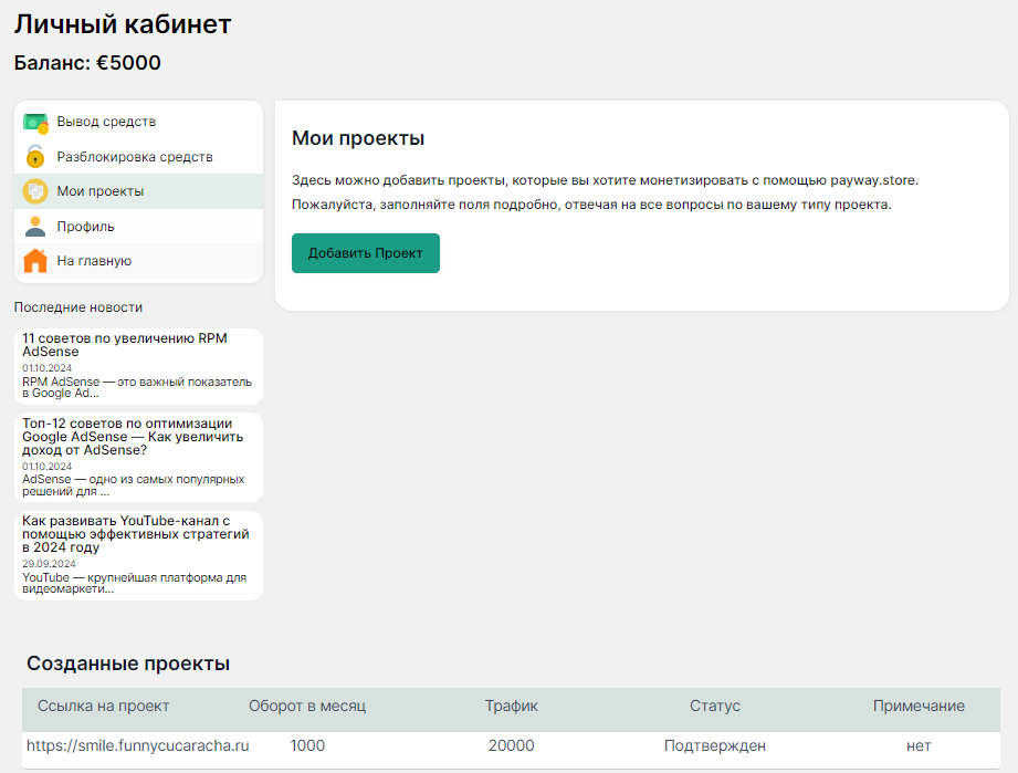 Теперь, когда вы знакомы с основными функциями личного кабинета PayWay, вы сможете эффективно управлять своими проектами и средствами. Пользуйтесь возможностями кабинета, чтобы монетизировать свой контент максимально удобно и безопасно.