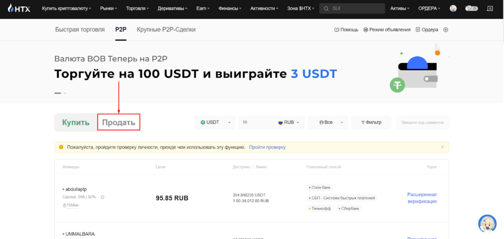 P2P-торговля доступна только пользователям с верификацией и двухфакторной аутентификацией.